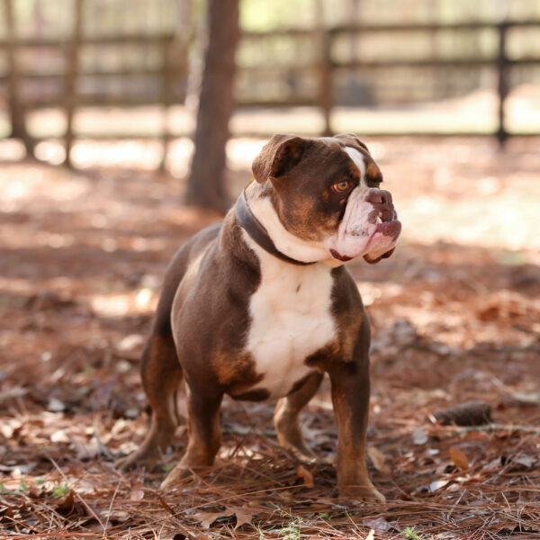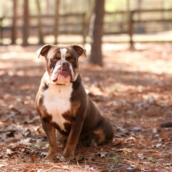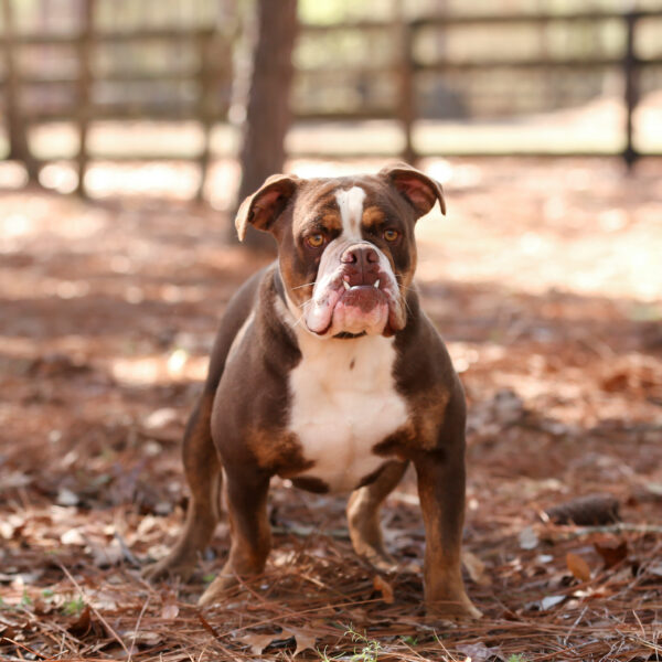 Daisy is a chocolate trindle female produced by Olde South out of Darla. She is extremely smart, very healthy, and athletic. She loves people and is very affectionate. She has a fanatic pedigree and has been so easy to train. She is another great example of the quality of our superior breeding program.