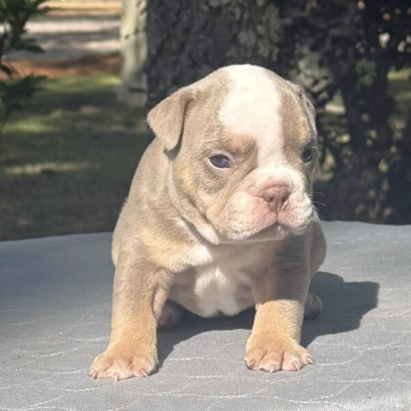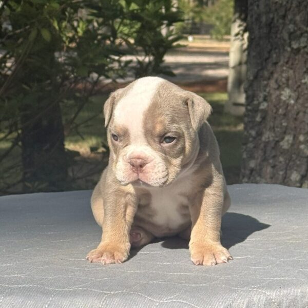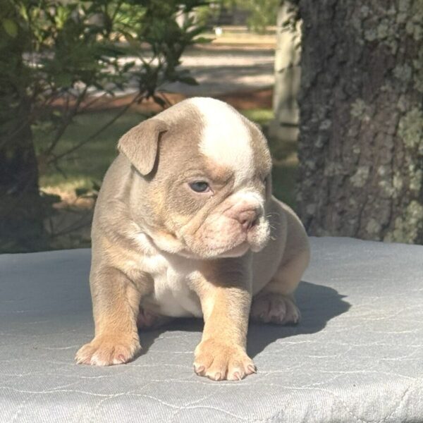 Lilac Tri Female Olde English Bulldog Puppy For Sale